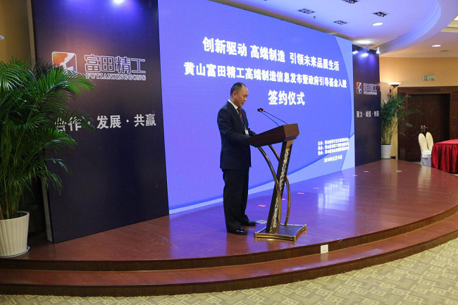 當(dāng)天下午,在安徽省黃山市黃山高爾夫大酒店隆重舉行了該公司機(jī)械制造信息發(fā)布暨政府引導(dǎo)資金入股簽約儀式。出席嘉賓有: